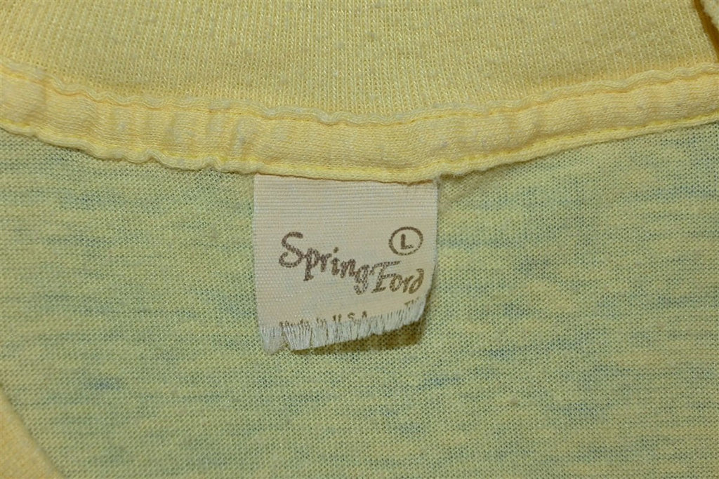 This vintage tee features a cartoon graphic that reads, "I survived the snow of  '85". This shirt was made in honor of the record cold and snowfall that befell Texas during January of 1985. From the 11th until the early morning hours of the 13th, the San Antonio area received a whopping thirteen and half inches of snowfall.
