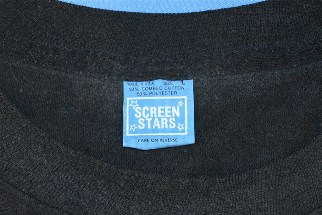 Fits like a modern unisex adult medium. Shirt is faded and the graphic is peeling a little, see pics