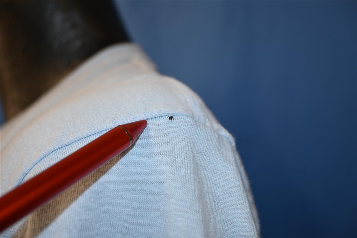 Fits like a modern women's adult medium, small holes on front, back, and left shoulder when wearing, see pics