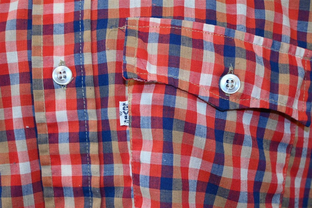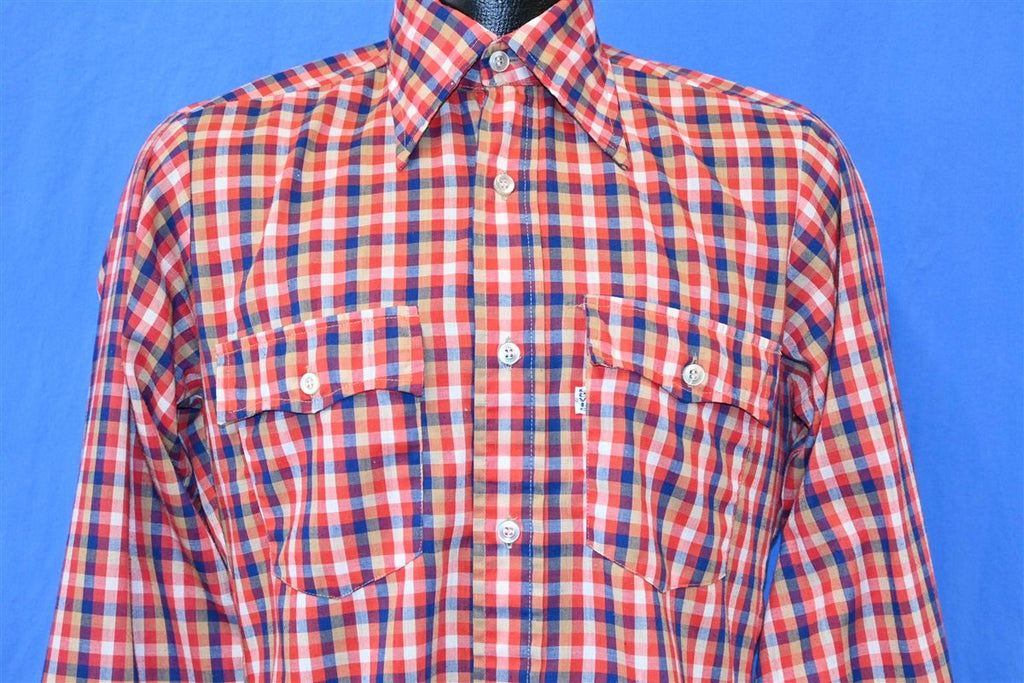 80s Levis Plaid Red White Blue Shirt Small
