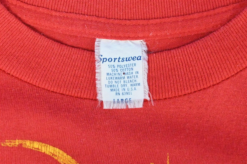 This cool double-sided t-shirt commemorates Liberty Weekend in 1986. This historic celebration took place over Fourth of July Weekend, and it was organized in honor of the centenary and restoration of the Statue of Liberty. Liberty Weekend featured a variety of events, including Operation Sail, a live musical concert, and the largest fireworks display in US History. The back of this tee mentions the contracting business B.H. Motto & Co., who may have helped sponsor some of the festivities.