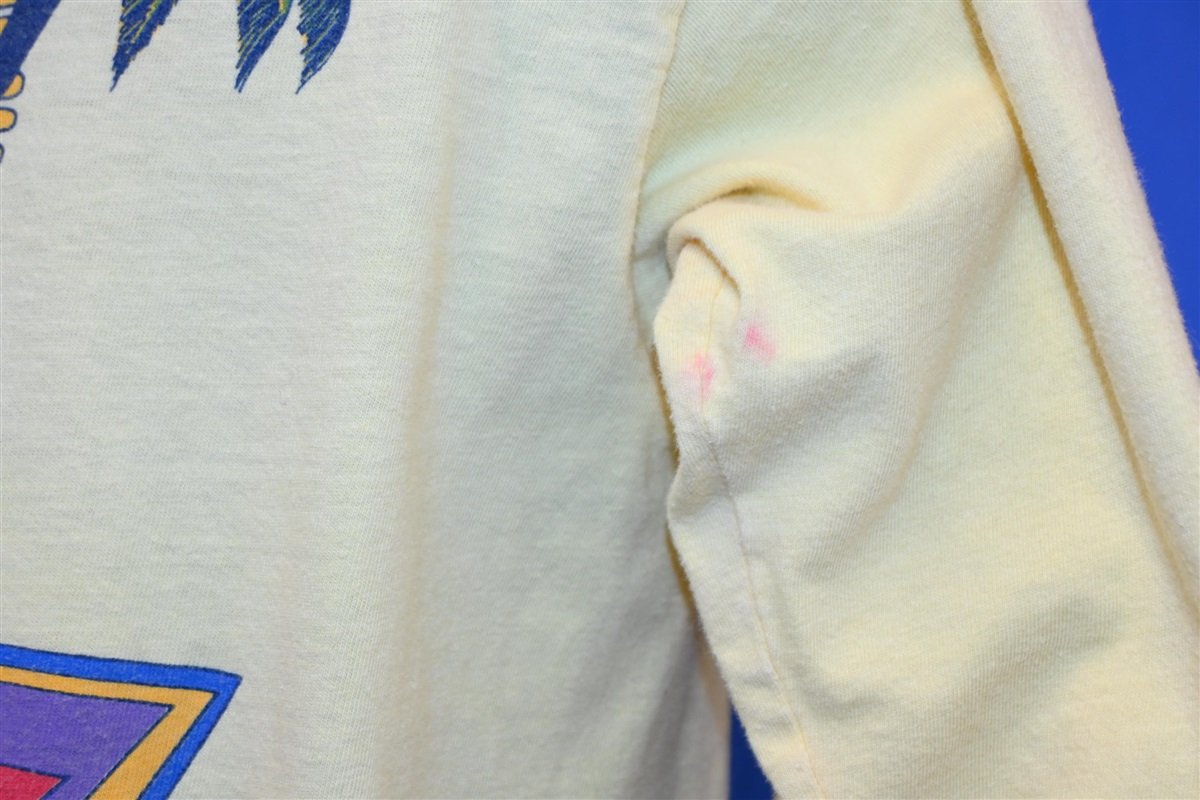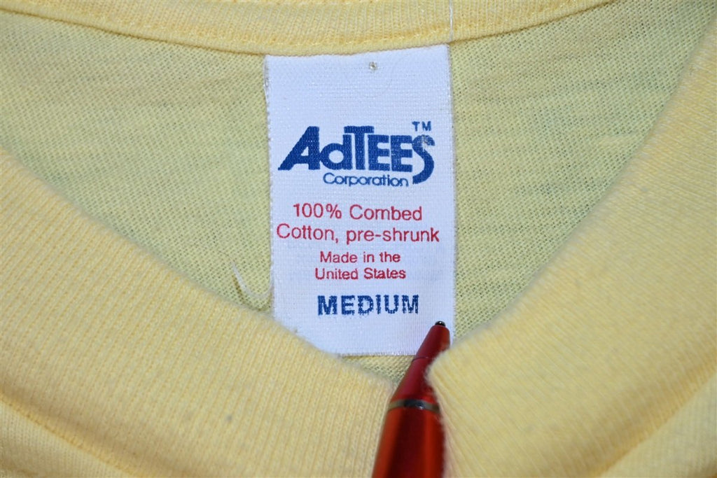 This shirt was made in the 80s and likely purchased at a local Myrtle Beach surf shop. Development in Myrtle Beach boomed in the 80s as more and more attractions, shops, and beach houses were added to the already popular vacation destination. This shirt is an amazing beach souvenir from one of the area's most popular eras.