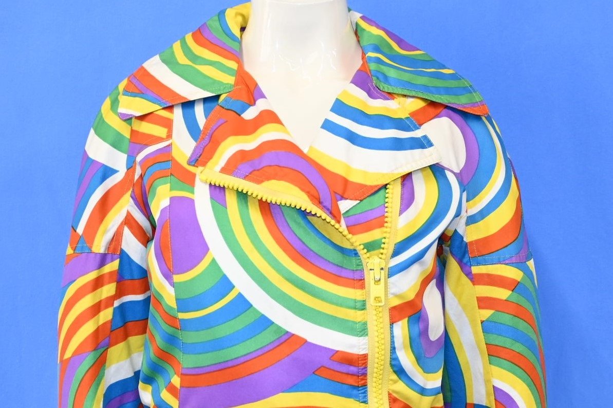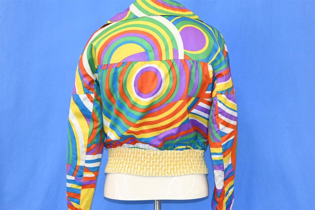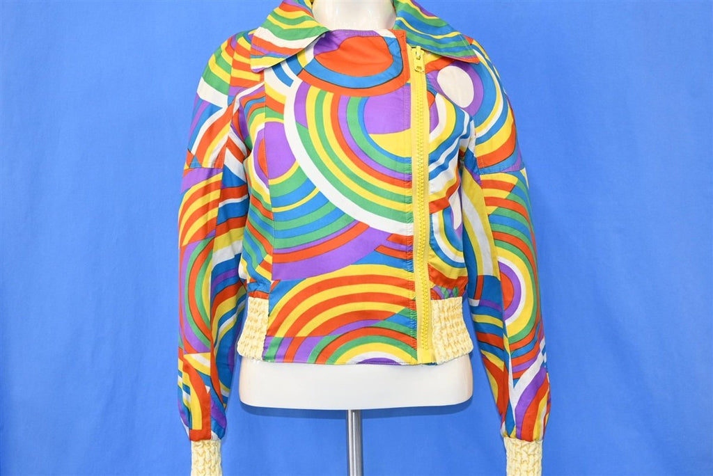 80s Rainbow Swirl Zip Up Nylon Moto Jacket Women's Small