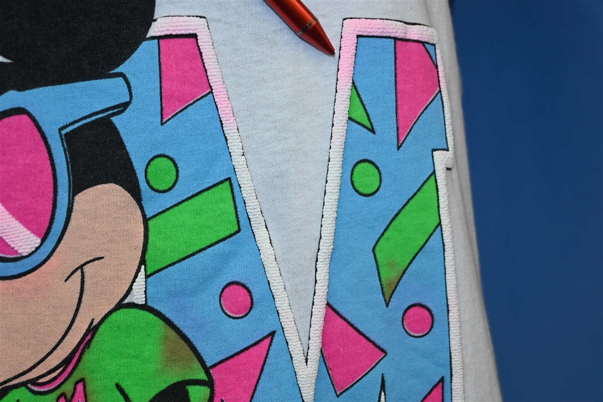 This cool and colorful tank top reps the great state of Texas, and it features a sweet image of Mickey Mouse sporting some neon 90s fashion. This shirt was made during the era of the Disney Renaissance, when the company was producing impressive animated features like Aladdin, Beauty and the Beast, and The Lion King. They also began the foray into computer animation with the help of Pixar, and they released the first ever film to be created entirely digitally, The Rescuers Down Under.