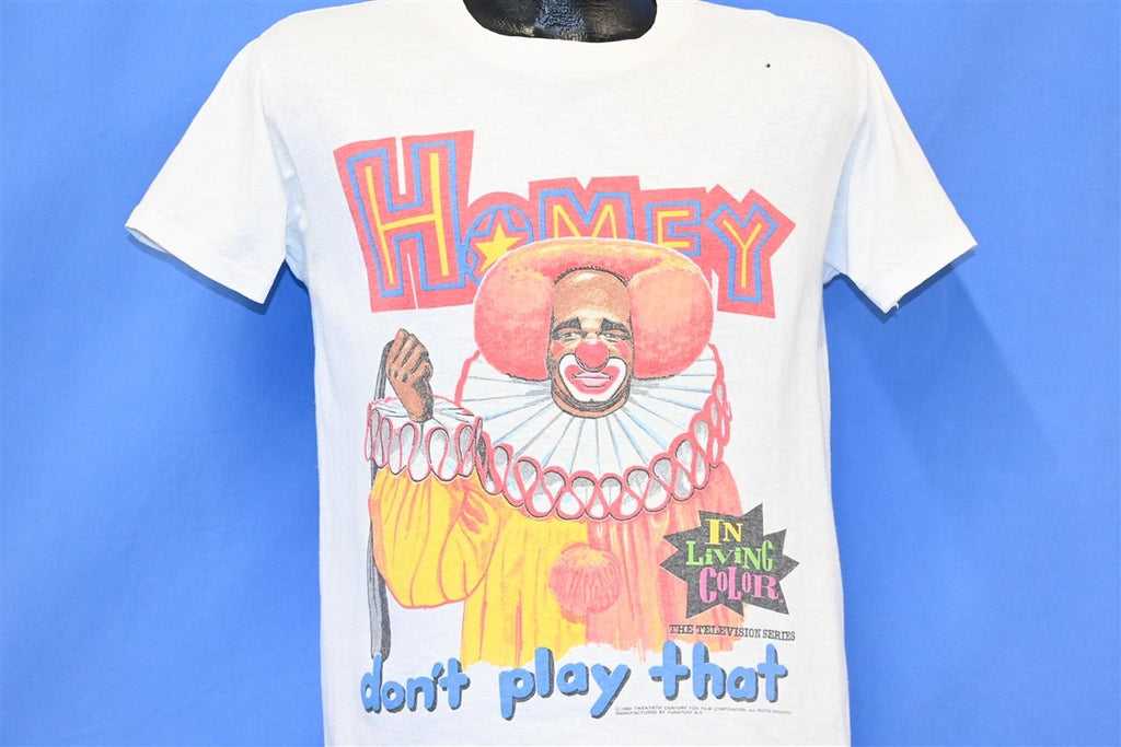 This awesome shirt celebrates Homey D. Clown, one of the many quirky characters featured on the iconic 90s sketch show, In Living Color, and it includes his catchphrase, "Homey don't play that". In Living Color was created by Keenen Ivory Wayans, and the show stood out for showcasing top notch Black comedians, and more irreverent Black humor than what had previously been shown on mainstream television. The show essentially paved the way for series like The Chapelle Show and Key & Peele, and it also introduced the world to talent like Jamie Foxx, Jim Carrey, and David Alan Grier.