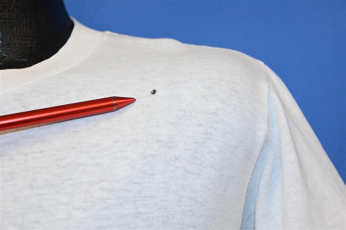 Fits like a modern unisex adult medium. There is a small hole on the shoulder, see pics.