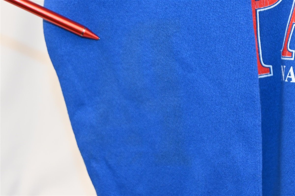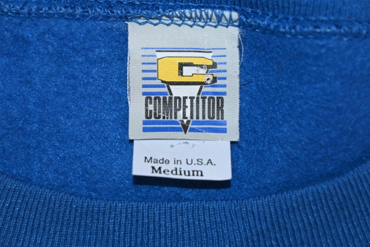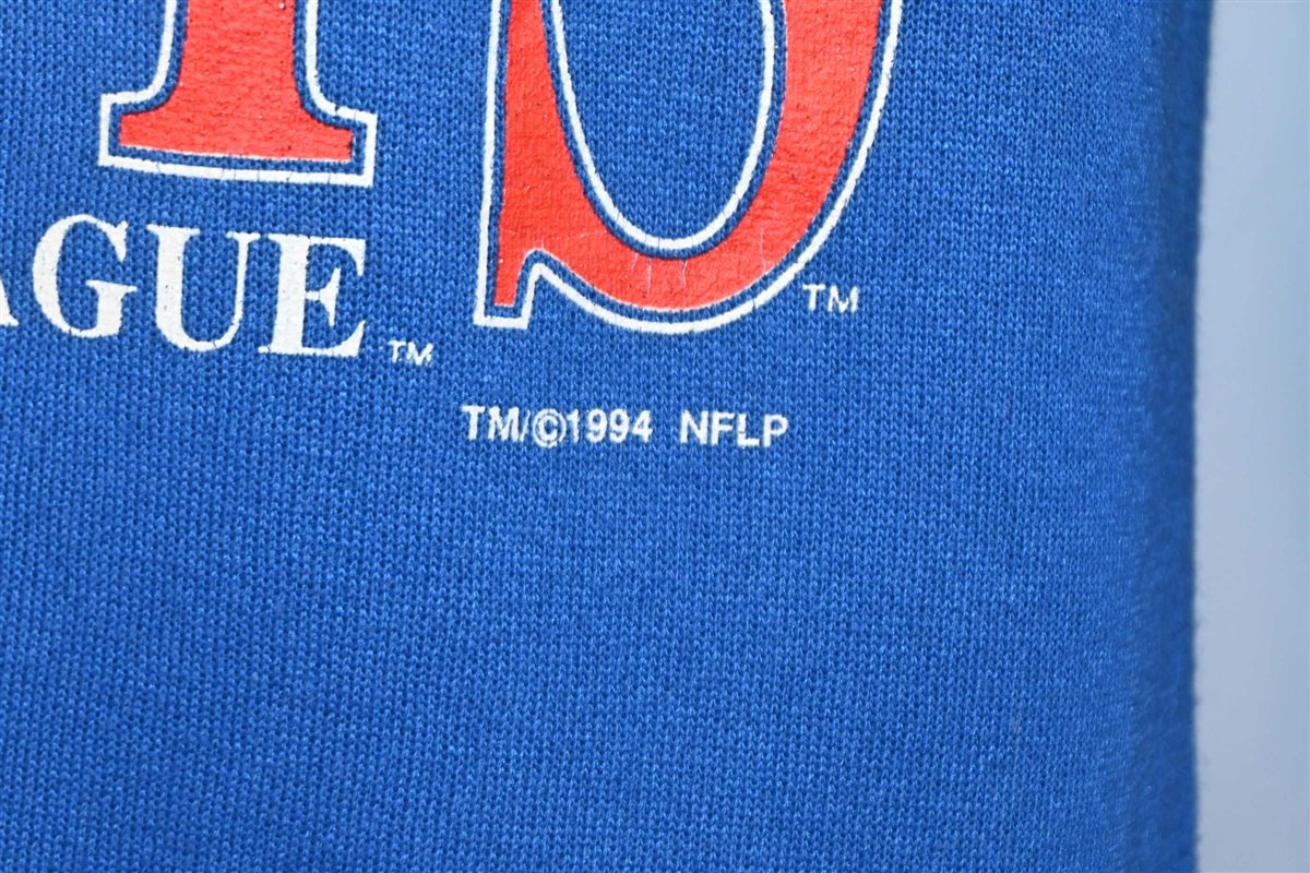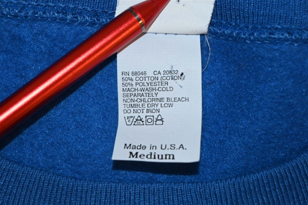 This sweet football sweatshirt was made to rep the New England Patriots. This shirt was made in the 90s, just before head coach Bill Belichick and quarterback Tom Brady shaped the team into one of the most dominant NFL franchises of the 2000s. The Patriots made several playoff appearances in the 90s, and they even earned a trip to Super Bowl XXXI, although they lost the game to the Green Bay Packers. Still, the team put up a hearty fight under the leadership of Hall of Fame coach, Bill Parcells.