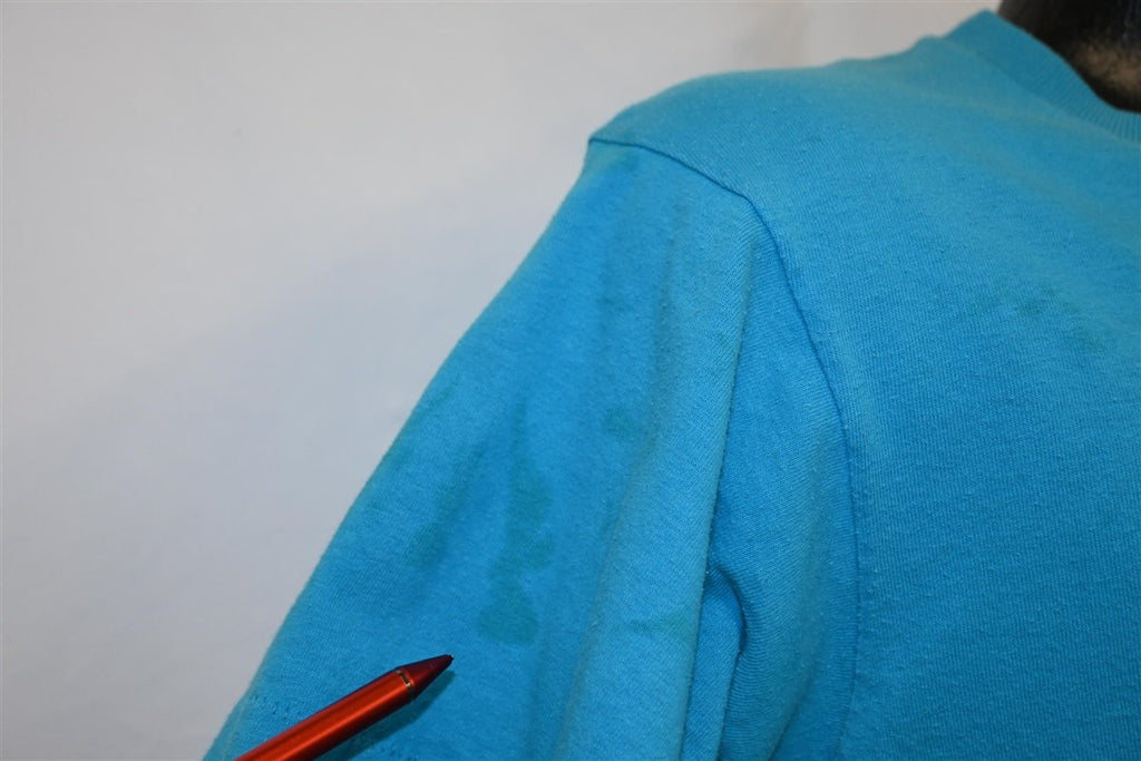 Fits like a modern unisex adult medium. There are spots on the right sleeve when wearing, see pics.