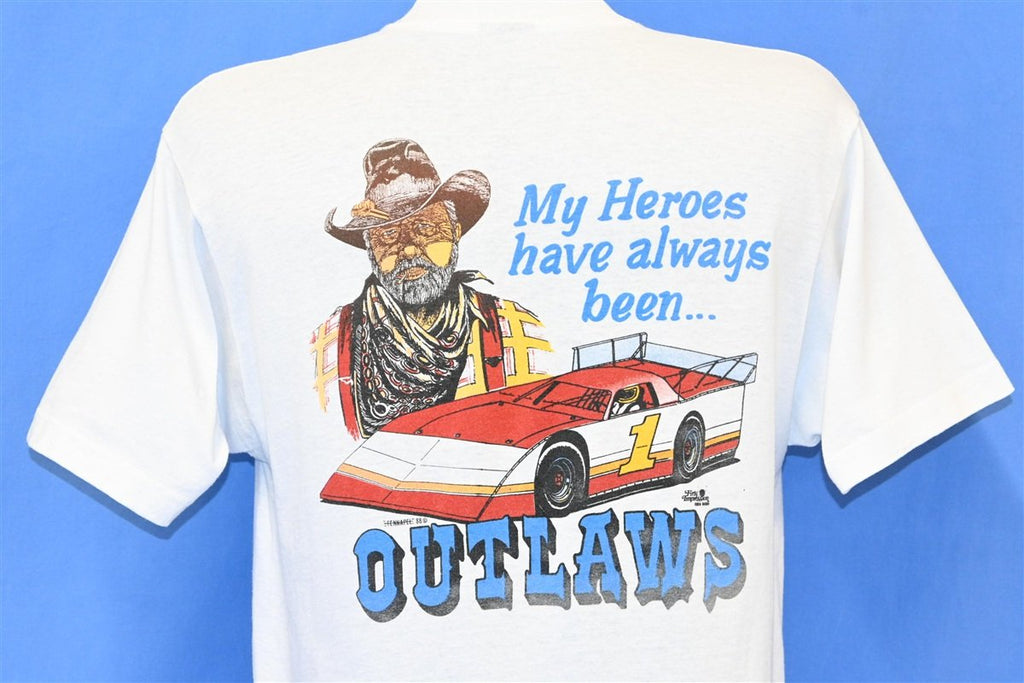 The back of this tee features the message, "my heroes have always been Outlaws", as a nod to the World of Outlaws Sprint Car Series. This popular dirt track racing series is operated by World Racing Group, and the brand has long been open about their stance against substance abuse.