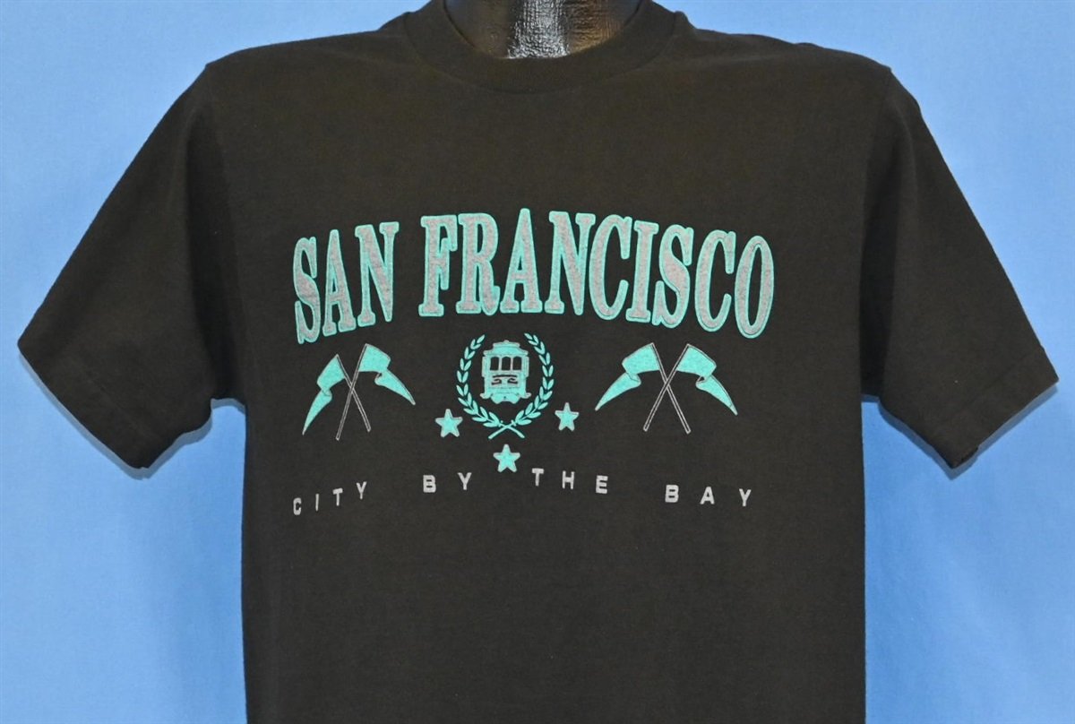 This sweet shirt is a souvenir from the City by the Bay, the beautiful San Francisco, California. This shirt also showcases one of the prides of the city, San Francisco's historic cable cars, which are the last manually operated cable cars in the world. This has made them one of the area's most popular tourist attractions, along with the Golden Gate Bridge.
