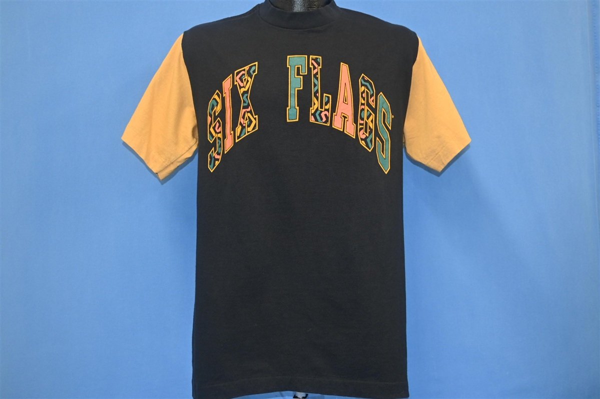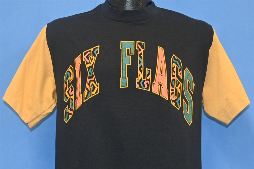 90s Six Flags Theme Park Colorblocked Black t-shirt Medium