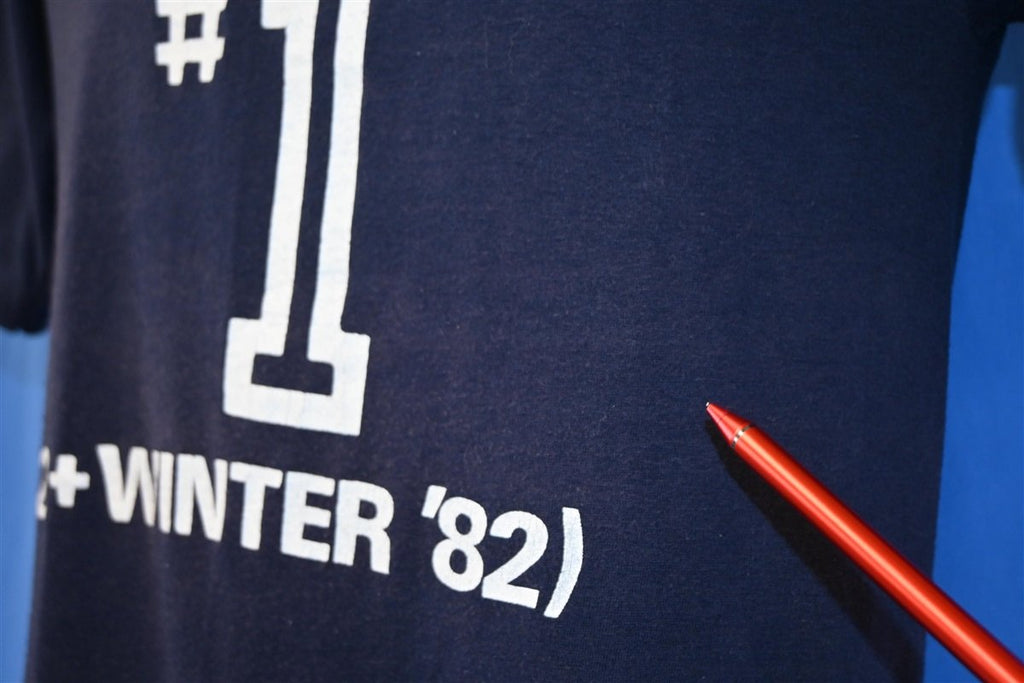 This cool tee was made to promote the Louisville, Kentucky based radio station, WAV970. The station played the oldies, from the post World War II era, into the 80s with an emphasis on the 50s and 60s. This shirt says "12+ Winter '82", this is likely to commemorate the unusually large amount of snow fall during the winter of 1982.