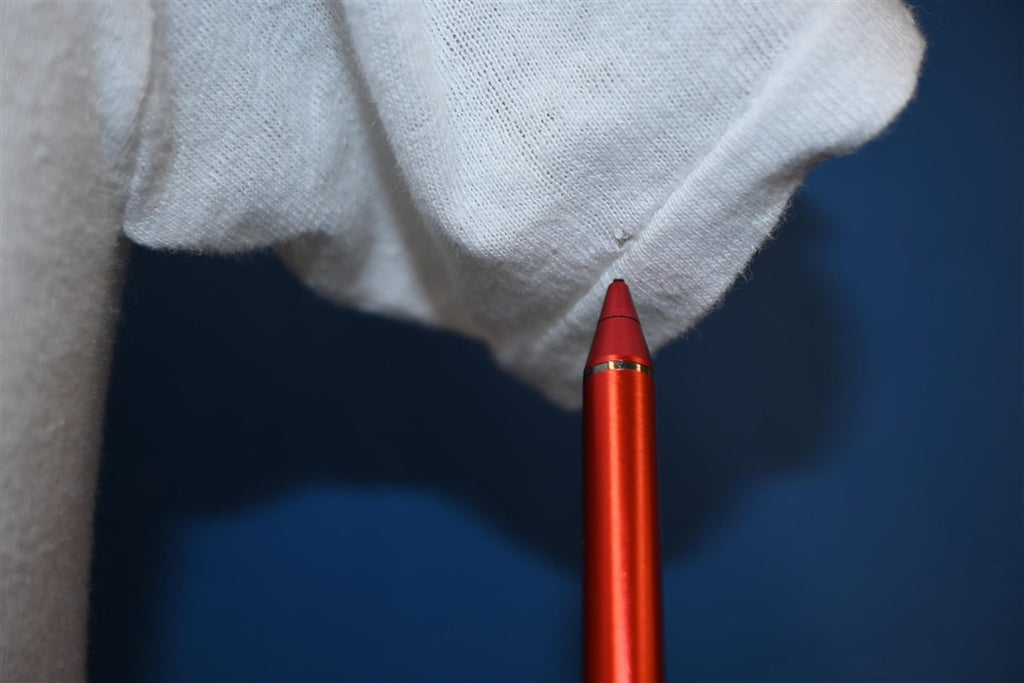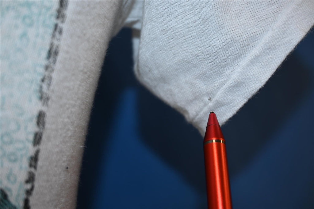 Fits like a modern unisex youth. There is a small hole on the hem of the both sleeves while wearing and a mark under the back graphic, see pics.