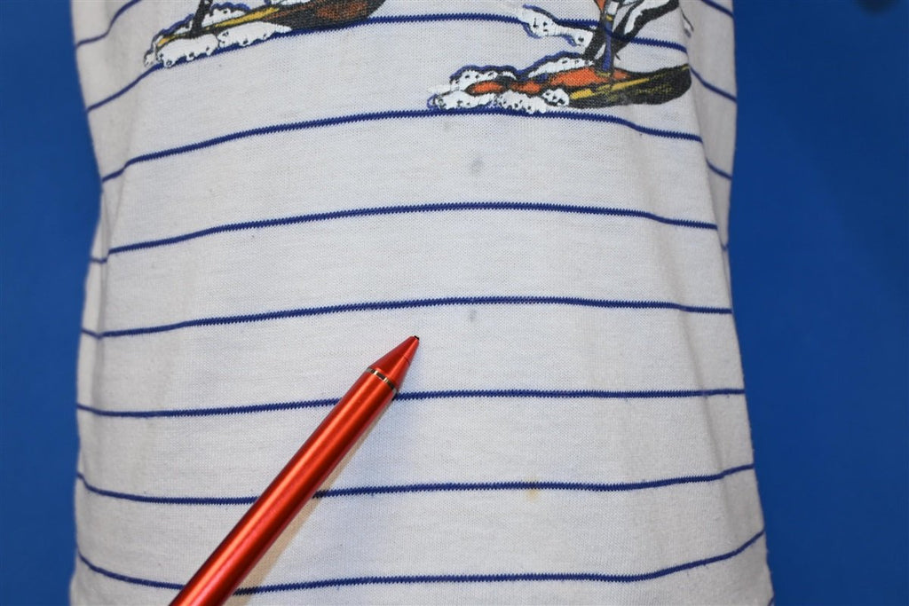 This cute tee is to rep for windsurfing! Windsurfing was very popular in the 80s and even became an Olympic sport in 1984. Windsurfing is combining surfing and sailing and is incredibly popular in California.