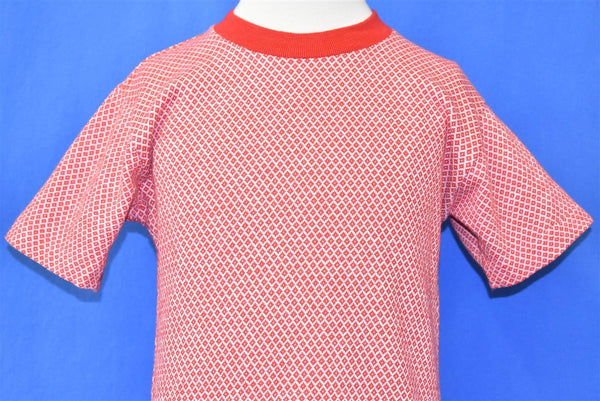 70s Red White Diamond Pattern Knit t-shirt Youth Medium