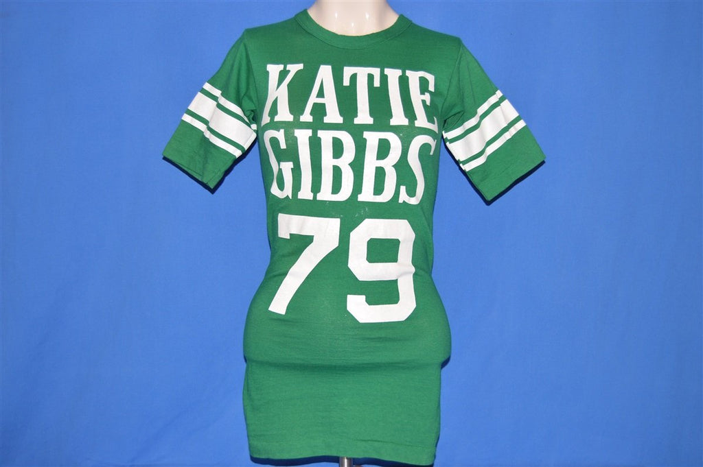 This vintage tee dates back to the 1970s when it was made for Katharine Gibbs College. It's held up amazingly over the years and has lots of life left in it. The classic jersey style, original Champion Blue Bar tag, and hundred percent cotton perfectly captures that 70s aesthetic.