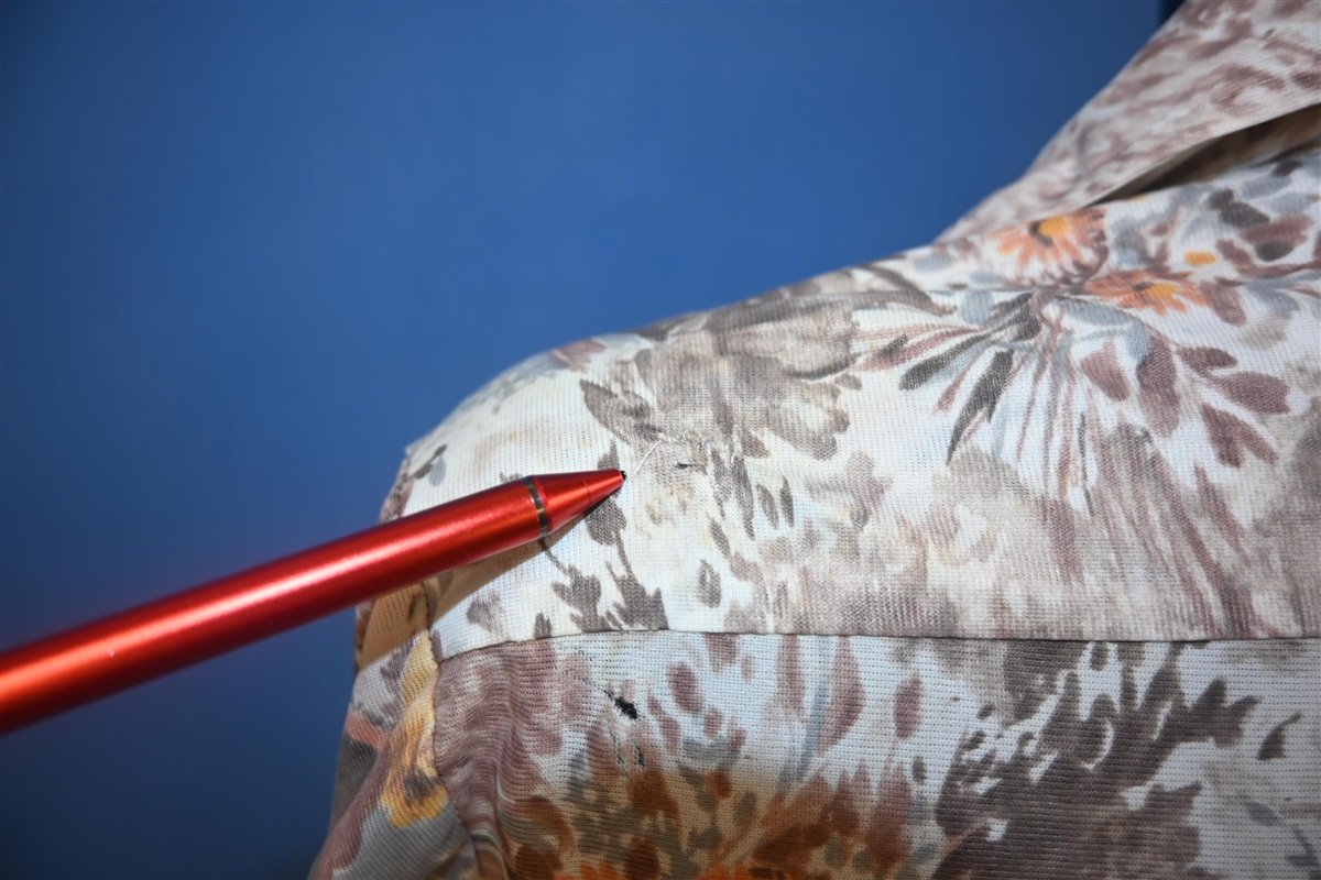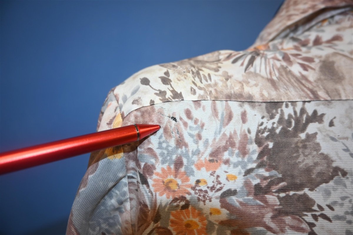 Fits like a modern unisex adult extra large, there's a repair and some holes on the back, see pics.
