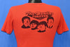 This unique vintage tee features a double sided graphic for rock 'n roll legends, the Beatles. It was made sometime in the 70s, shortly after John Lennon, Ringo Starr, George Harrison, and Paul McCartney went their separate ways. Almost immediately after they broke up, there was a wave of Beatles nostalgia. All four former Beatles continued to record solo work and there were some collaborations but nothing close to the content they were putting out during the 60s. Regardless of public pressure for a reunion, the Beatles would never play together again after 1969.