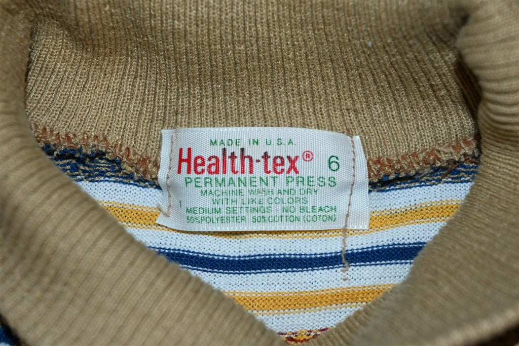 70s Health-Tex Turtleneck Geometric Striped t-shirt Youth Small