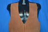 This brown suede leather vest is from the 80s and is in excellent used condition. The vest has a brown satin back with an adjustable tie detail and a metal zipper closure.