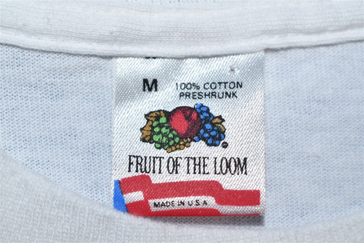 This awesome vintage t-shirt promos the short-lived animated series based off the iconic stoner comedy Bill & Ted's Excellent Adventure. The original Bill & Ted movie was released in 1989 and it starred Keanu Reeves and Alex Winter as a pair of valley boy slackers that travel through time to complete their high school history report. The animated series brought back the concept of the time-traveling phone booth used in the movie and the character of their mentor Rufus, as portrayed by legendary comedian George Carlin. This shirt is from the first season of the show which was produced by Hanna-Barbera and featured Reeves, Winter, and Carlin all reprising their roles for the voice cast.
