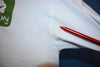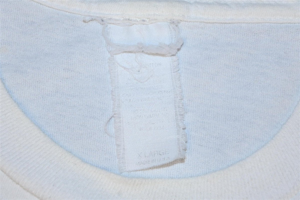 Fits like a modern unisex adult Extra Large. There is some very light discoloration under the arms, see pics.