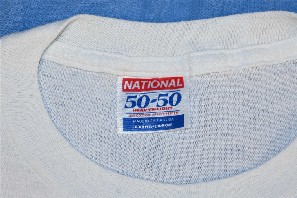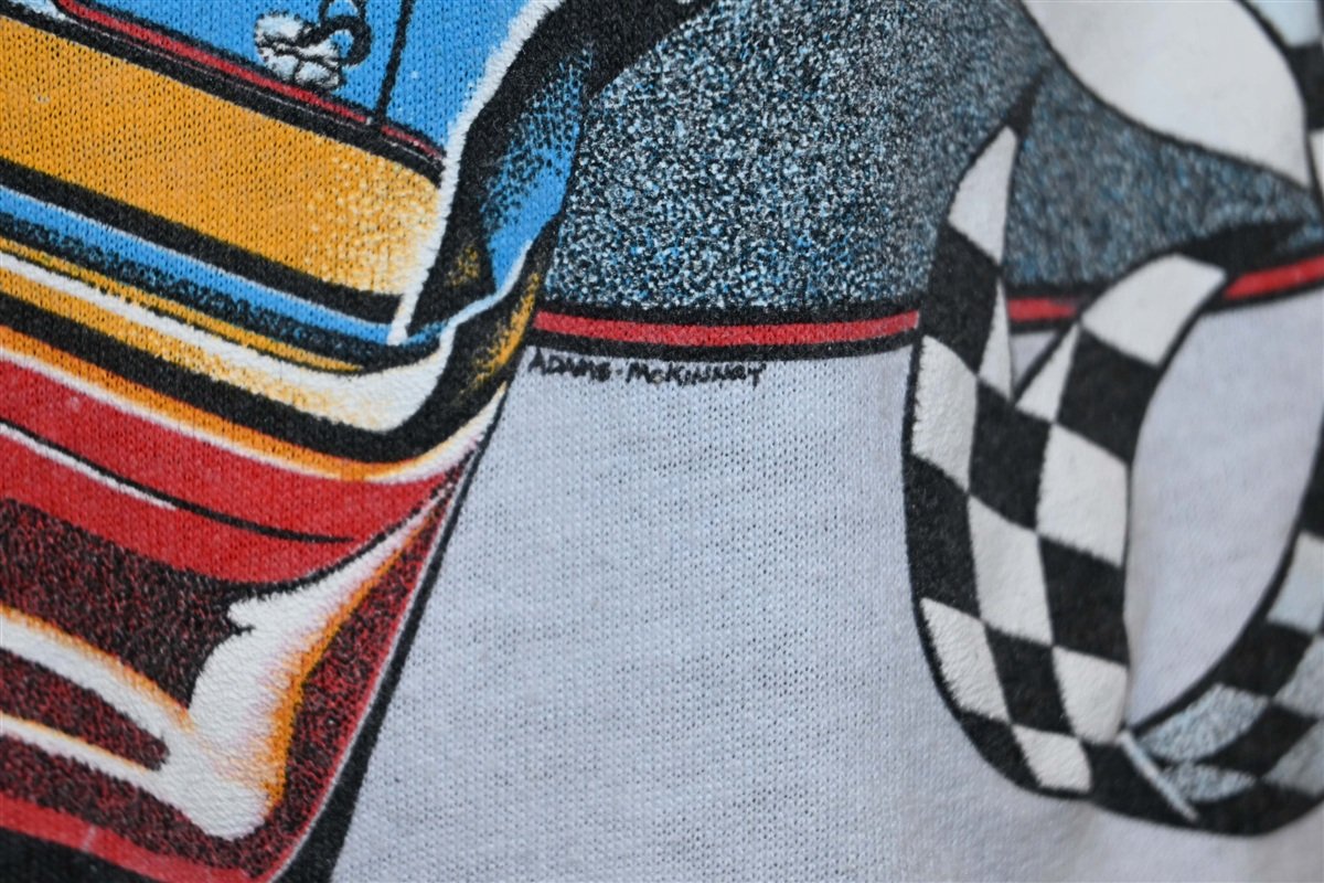This sweet shirt celebrates what is often regarded as the most important and prestigious race of the annual NASCAR Cup Series, the Daytona 500. The race is held each year at the Daytona International Speedway in Florida, which is referred to here as the "world center of racing". The Daytona 500 has the honor of kicking off the NASCAR season, and it also has the largest purse of the series. This shirt was made back in the 90s, when winners of the race included NASCAR Hall of Famers Dale Jarrett and Jeff Gordon.