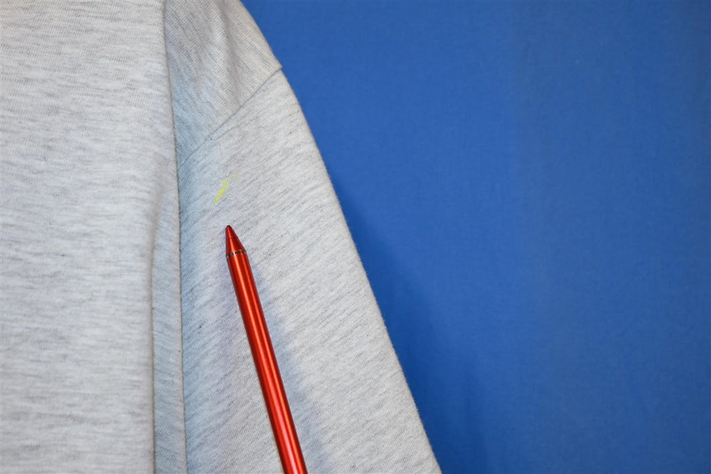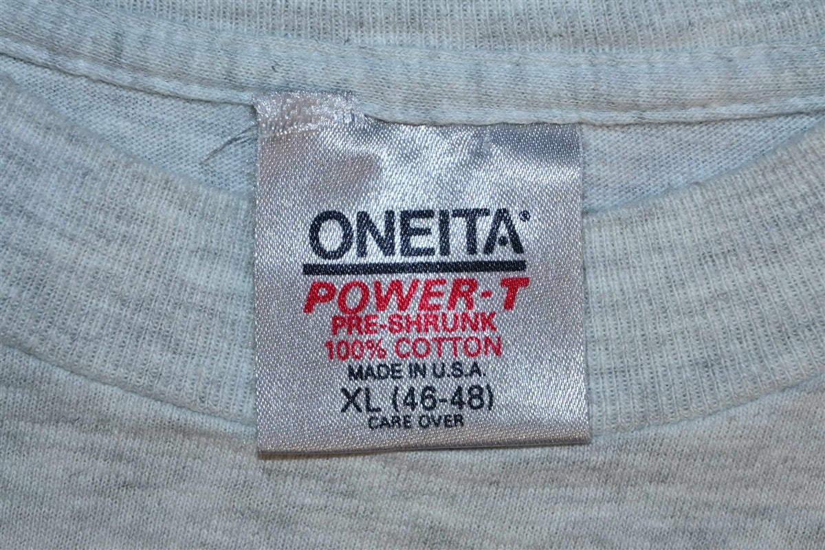 This humorous vintage tee is a remnant from one of the most shocking celebrity scandals of the early 90s. The shirt features a portrait of beloved children's television actor Paul Reubens as his iconic character Pee Wee Herman, and it also makes reference to Reuben's show Pee-wee's Playhouse and the series' episodic gag, the secret word of the day. In this case the word is "autoerotic" in reference to Reuben's arrest during the summer of 1991.