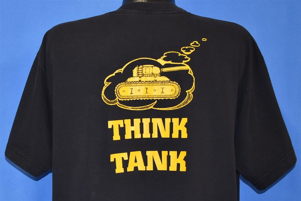 This cool vintage shirt features the cover art promoting Henry Rollins' 1998 spoken word album Think Tank. Rollins is best known for fronting the punk band Black Flag and then later the Rollins Band. He has also hosted a number of radio shows and appeared in television shows such as Sons of Anarchy, and films like Johnny Mnemonic and He Never Died. In addition to his acting and music career, Rollins has been involved with various political causes including World Hunger Relief and the promotion of LGBTQ rights.