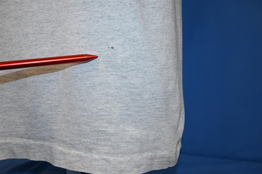 Fits like a modern unisex adult Extra Large. There are some tiny spots throughout and a small hole, see pics.