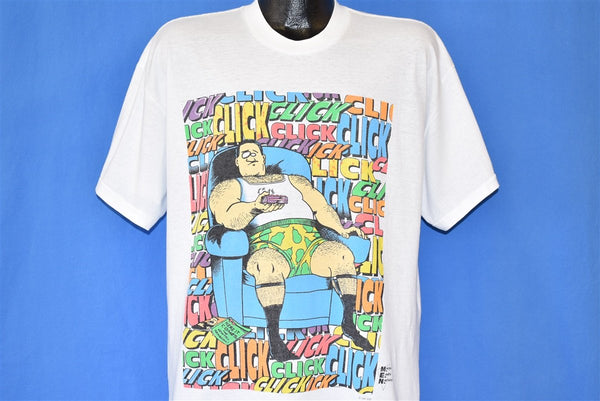 90s Click TV Remote Lazy Funny Cartoon t-shirt Extra Large
