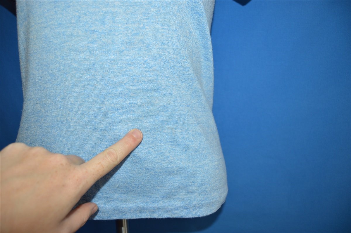 The tag says small but this shirt fits like a modern unisex adult extra small. There is a small spot on the front, see pics.