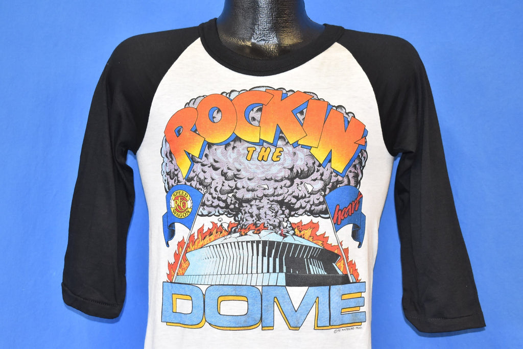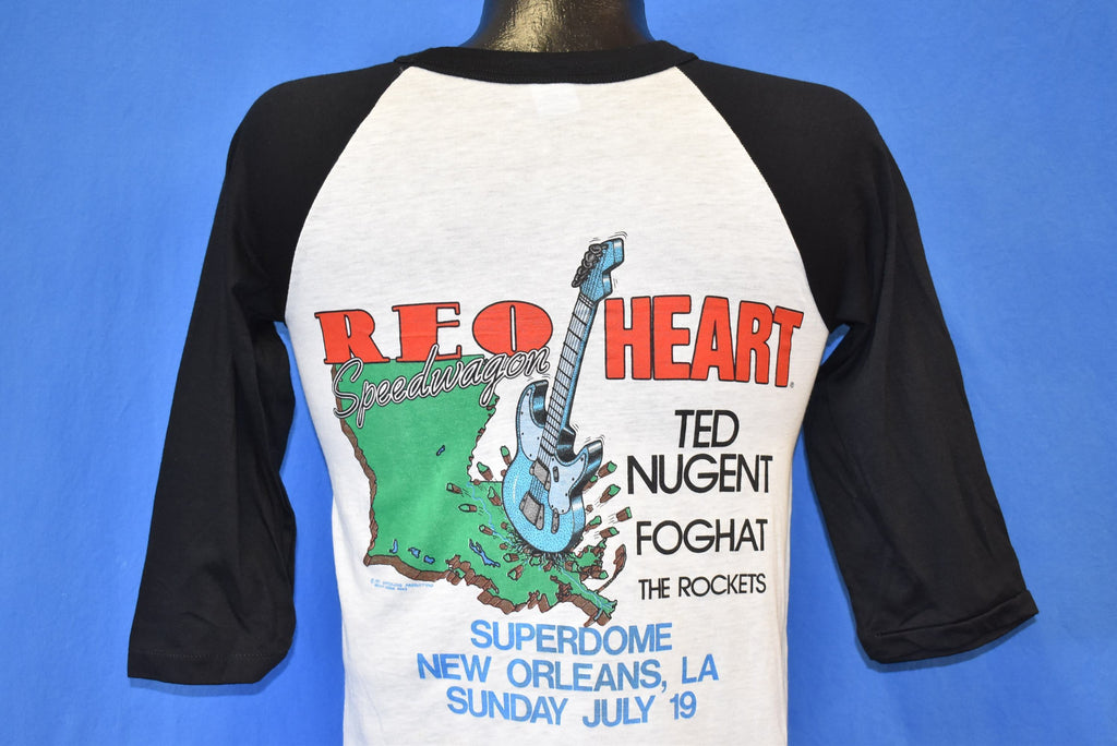 This awesome jersey style tee comes from a concert at the Louisiana Superdome in New Orleans which featured Foghat, Ted Nugent, and the Rockets. The Headliners of the show were Reo Speedwagon and Heart. The concert took place in July of 1981 and was known as the 3rd Annual Day of Rock.