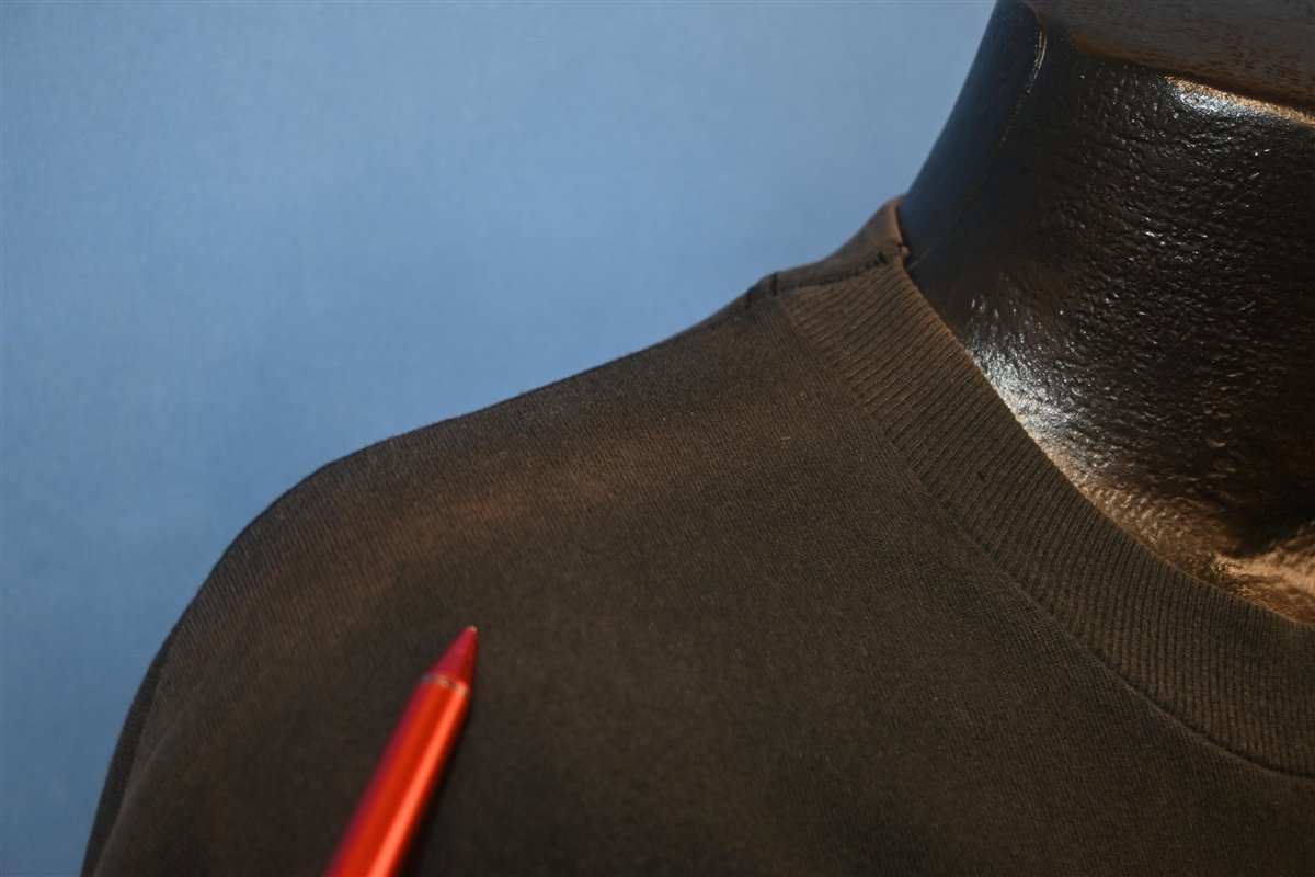 Fits like a modern unisex adult Extra Large. The print is off center on the front, and there is some hanger fade on the shoulders, see pics.