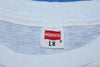 Fits like a modern unisex adult large. Repair on the front, see pics. Double sided print.