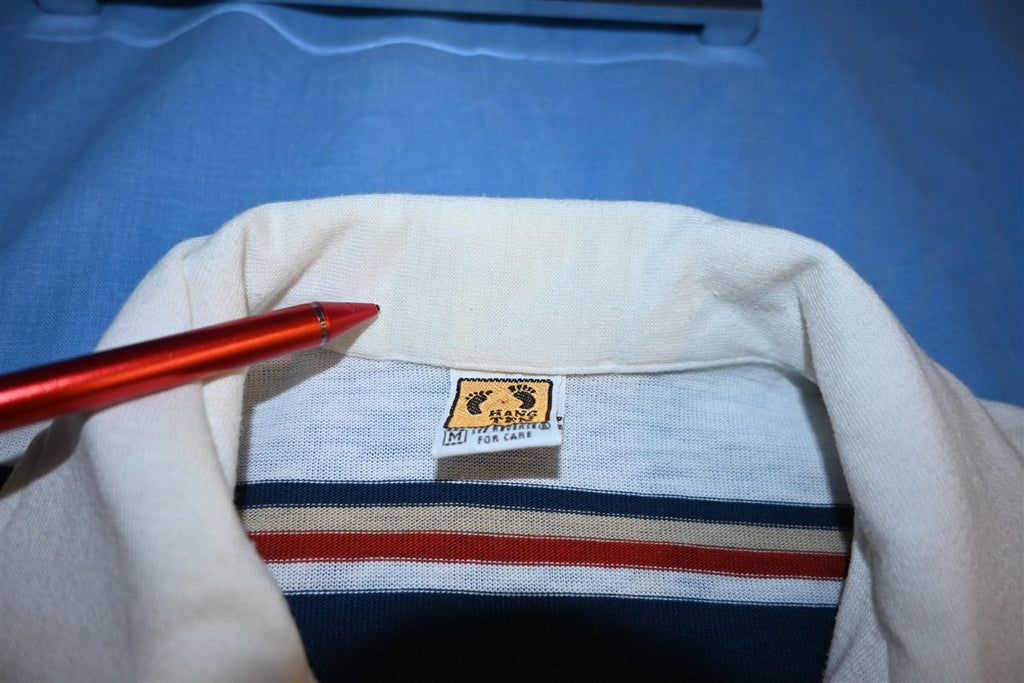 70s Hang Ten White Blue Beige Striped Polo Shirt Medium
