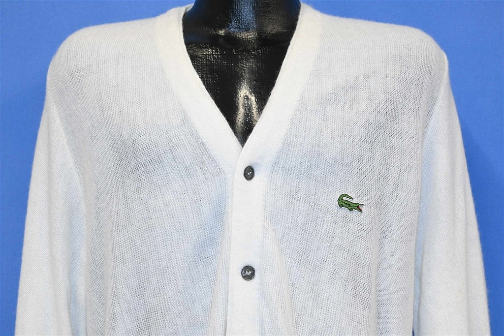 70s Izod Lacoste Crocodile White Cardigan Sweater Large
