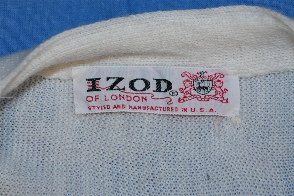 This cozy cardigan was made in the 70s thanks to the classic collaboration between Izod of London and the Lacoste shirt company. The two first joined forces in the early 50s, and spent the next few decades catering to the preppy fashion trend. This sweater is made from a wonderfully soft acrylic fabric and it features Lacoste's famous, embroidered crocodile logo.