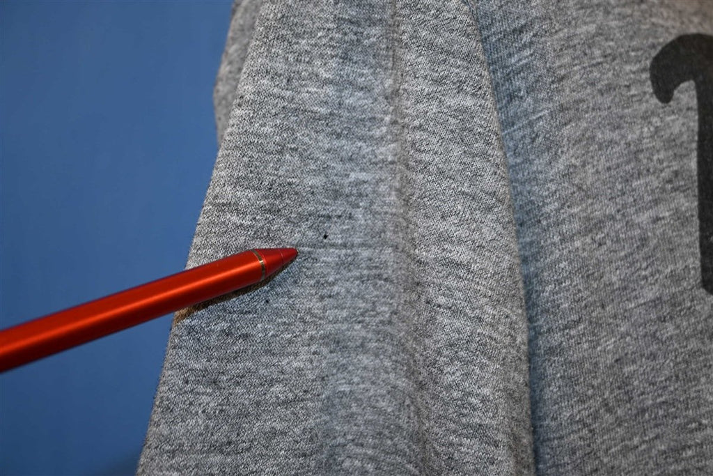 Fits like a modern unisex adult large. There is a small hole on the right sleeve when wearing, see pics.