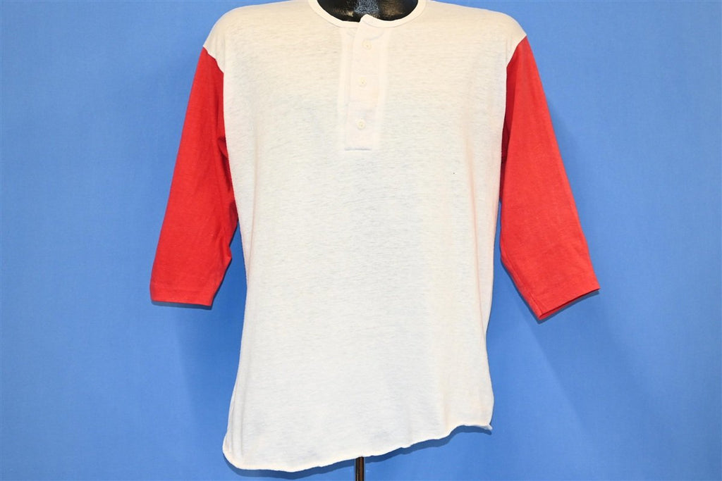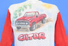 This cool vintage henley is totally blank on the front, but the back has been decorated with an awesome custom airbrushed graphic. The back graphic features a red Chevy pickup truck above some bubble letters that spell out the nickname "Gator". This shirt was made in the 80s, when airbrushed t-shirt stands could be found at most boardwalks, amusement parks, and shopping malls. The endless customization possibilities and quick production time made airbrushed tees one of the trendiest souvenirs of the era.