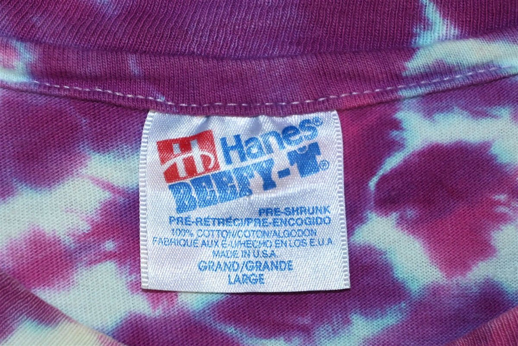 This awesomely colorful tee is a souvenir from New Orleans, Louisiana in 1995. This shirt sports a sweet rainbow tie-dye pattern and a graphic that simply says "Jazz '95". There's no scarcity of jazz music in the city known as the "Big Easy". Many consider New Orleans to be the birthplace of the genre, and jazz music can often be heard playing from the many various bars and nightlife spots that line the streets.
