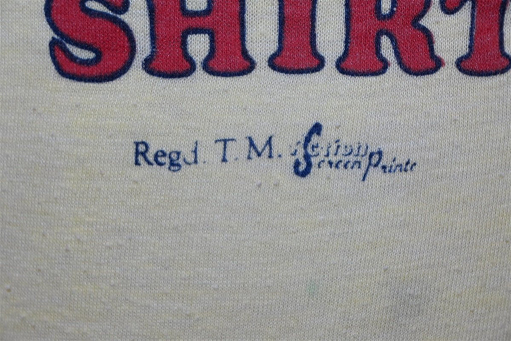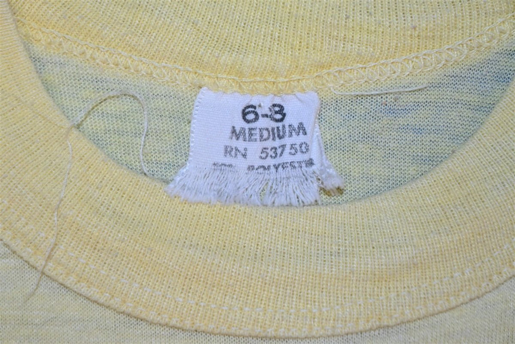 Fits like a modern unisex youth Small. There is some discoloration on the front of the shirt.
