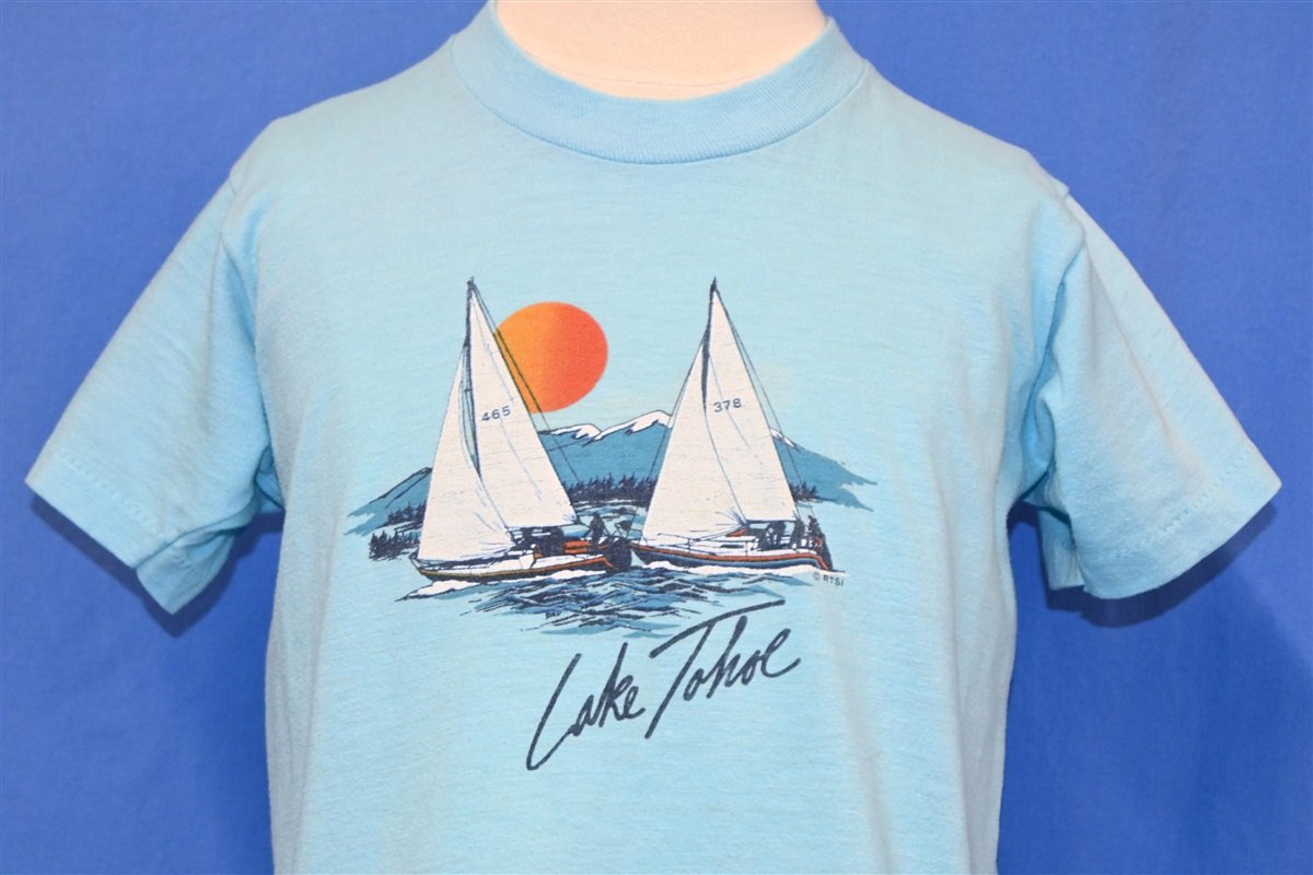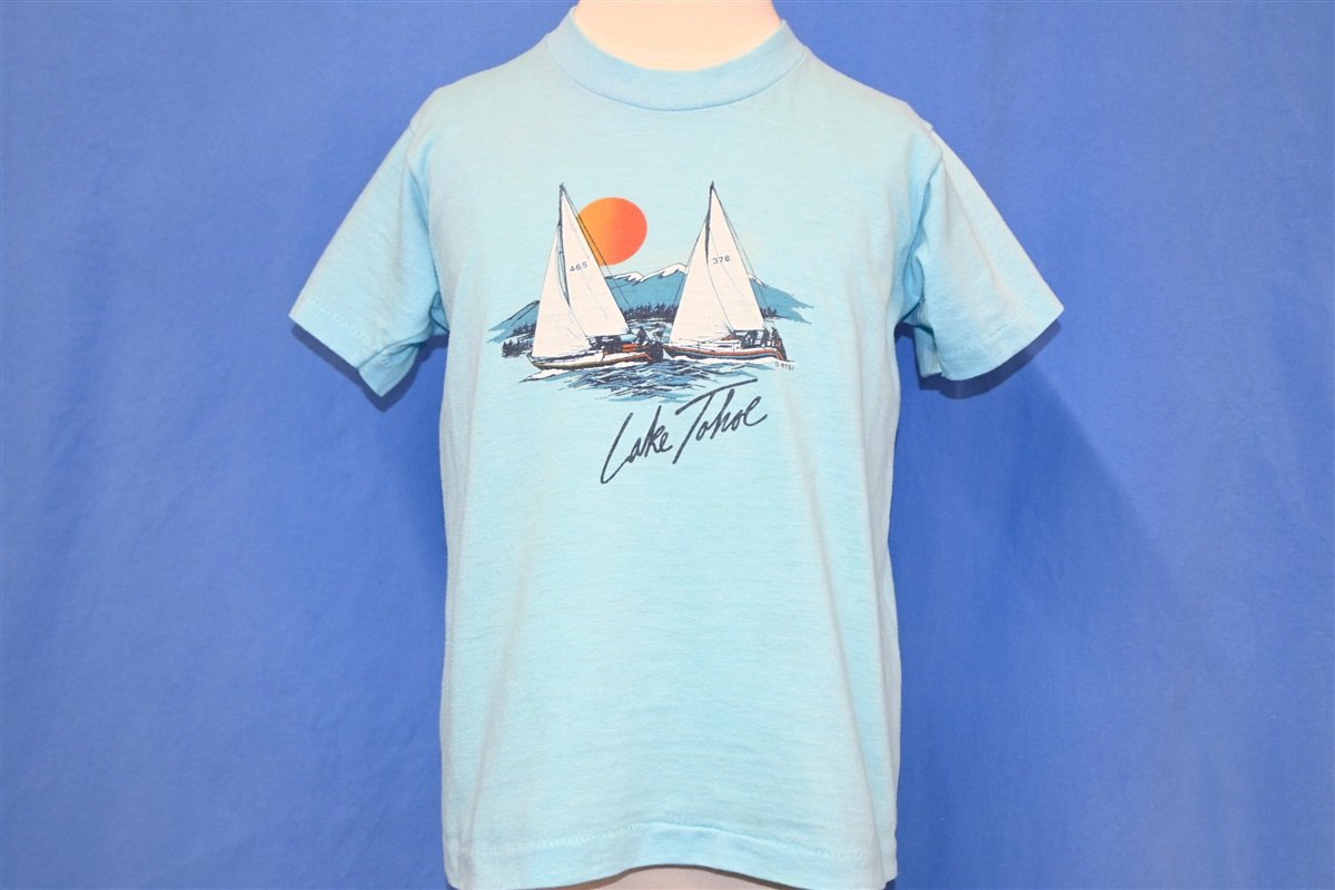 80s Lake Tahoe Sunset Mountains Sailboats t-shirt Youth Large