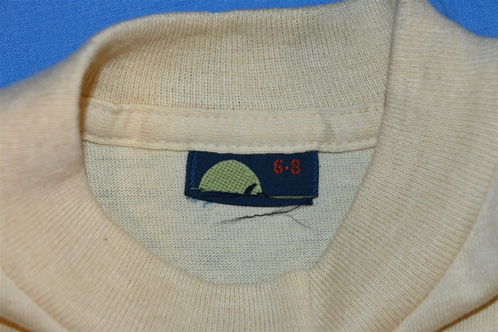 This awesome kid's tee is from the 80s, and it sports a cool striped graphic from the brand Tropix. This shirt celebrates the sport of windsurfing, and it was made during a time when the sport was really starting to gain mainstream popularity.