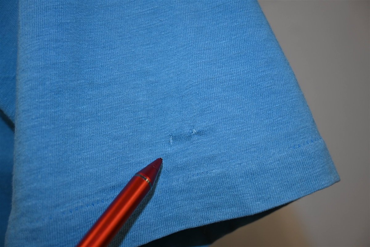 Fits like a modern unisex adult large. There are two repairs on the right sleeve when wearing and a spot on the back, see pics