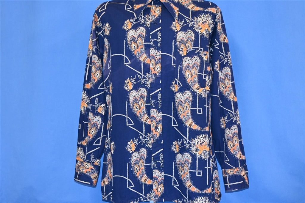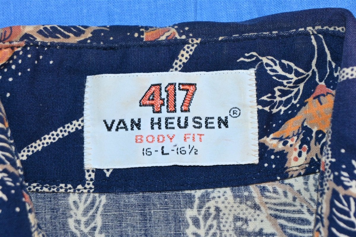 70s Van Heusen Blue Floral Button Down Shirt Large