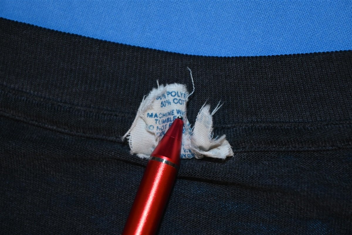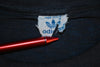 This shirt was made in the 80s, when Adidas was particularly popular among streetwear and hip hop fashion. Golden Era rap group, Run D.M.C. actually wrote a song called "My Adidas", which they performed at a concert in front of an Adidas marketing executive. The group asked the audience to hold up their sneakers to demonstrate to the executive how popular they had made the shoes, and after seeing a sea of sneakers in the air, Run D.M.C. was given a sponsorship deal with the company.