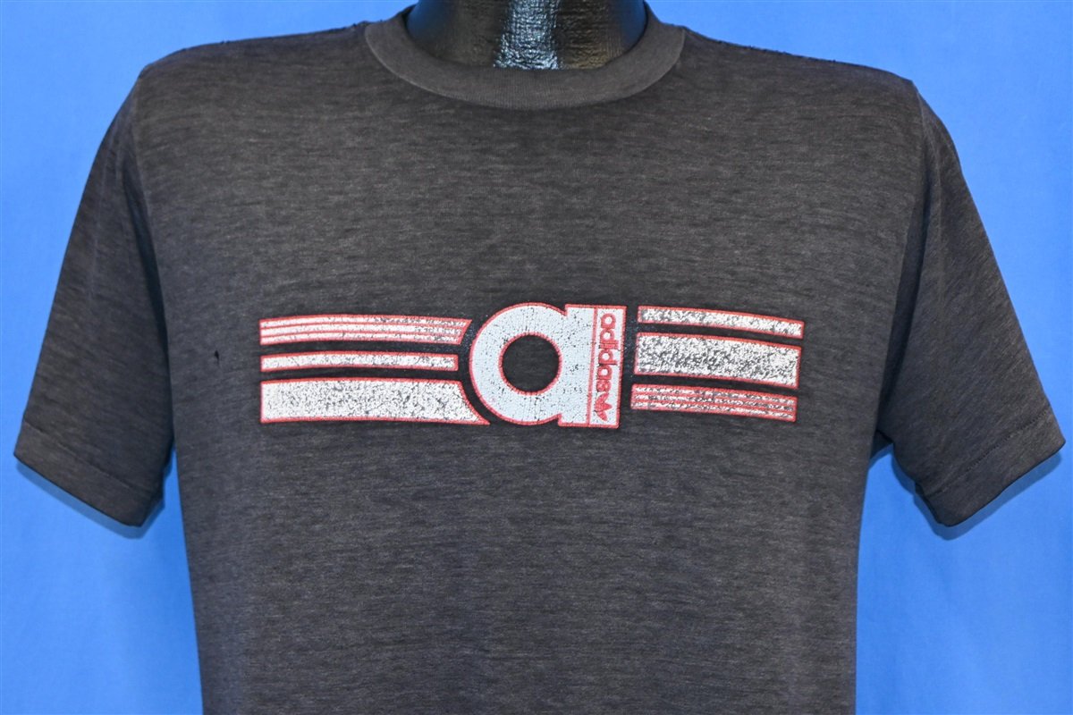 80s Adidas Trefoil Three Stripe Logo Distressed t-shirt Medium