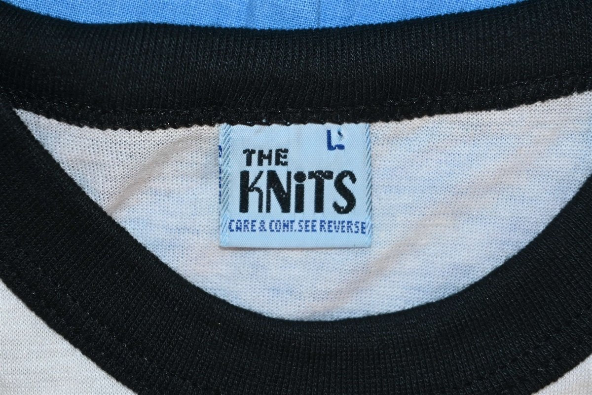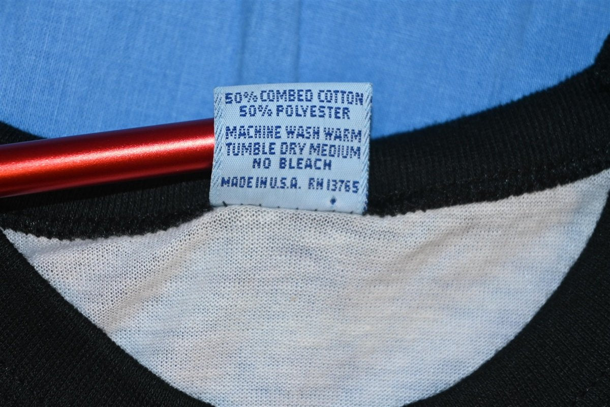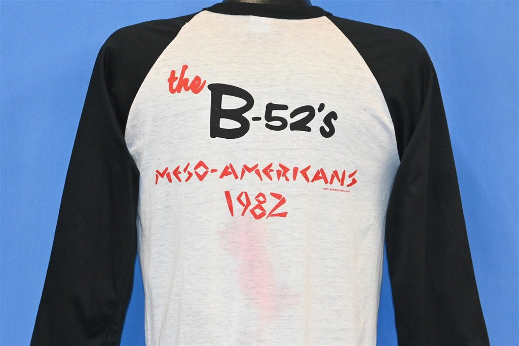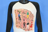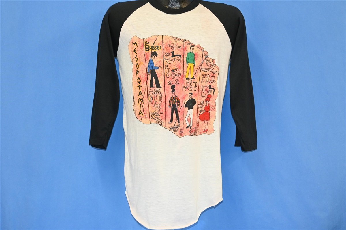 This amazing raglan tee is for the B-52s, and it was made to promote the band's 1982 EP, Mesopotamia. This shirt features the cover art that was used for the release, which features a portrait of the band drawn as if they were depicted in ancient hieroglyphics.