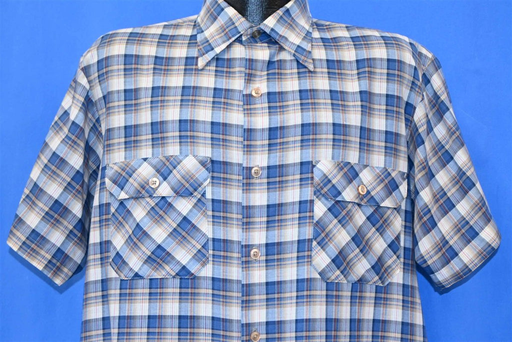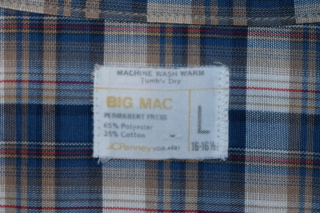 80s Big Mac Plaid Blue Beige Cream Red Button Down Shirt Large